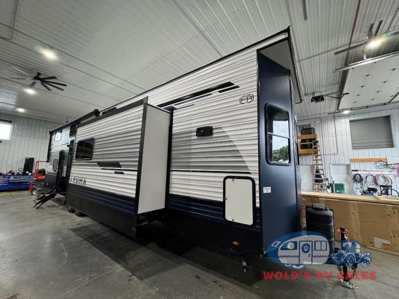The Puma 403LFT is one of the standout models available at Wold’s RV Sales. Designed with long-term comfort in mind, this destination trailer offers a spacious interior ideal for families and extended campground stays. Buyers considering campers for sale in Detroit Lakes often find that the Puma 403LFT combines residential-style design with modern amenities. Its layout includes multiple sleeping areas, large windows, and a functional kitchen, making it a suitable choice for extended seasonal living or road travel. With features like ample cabinet space, a full bathroom, and climate control systems, the Puma 403LFT offers convenience and comfort in any season. Entertainment options such as built-in media centers and comfortable seating make it perfect for family gatherings.